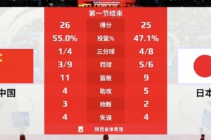 本场比赛也是两种风格篮球的对撞,首节较量,中国女篮两分16投10中(20分),三分4投1中(3分);日本女篮两分9投投4中(8分),三分8投4中12分。