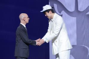 2025年NBA选秀大会,今天迎来20岁生日的中国球员杨瀚森在首轮第16顺位被开拓者(从灰熊交易来的)选中。