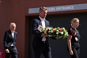 体育资讯7月9日讯 今日,利物浦俱乐部首席执行官比利-霍根携高管团队成员在安菲尔德球场向若塔兄弟致以深切敬意,并献上鲜花表达哀悼之情。