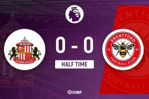 半场-瓦塔拉进球被吹两队半场仅1射正 桑德兰暂0-0布伦特福德