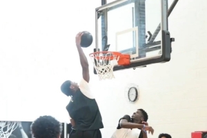 视频中可以看到,亚历山大正在和小球员单挑,只见亚历山大一套连招后使出自抛自扣,引得全场欢呼。