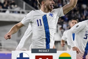 体育资讯10月10日讯 世预赛欧洲区小组赛G组第7轮比赛,芬兰在主场以2-1的比分战胜立陶宛。