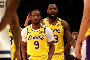 体育资讯10月23日讯 去年的今天,NBA揭幕战湖人110-103战胜森林狼,詹姆斯父子实现同台。
