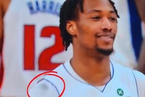 GIF-😂发际线粉蹭掉了!杰伦-布朗的头一通乱蹭 OG球衣一大团黑