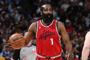全场比赛,哈登出战40分钟,投篮15中4,三分10中2,拿到13分13助,正负值-18全场最低。